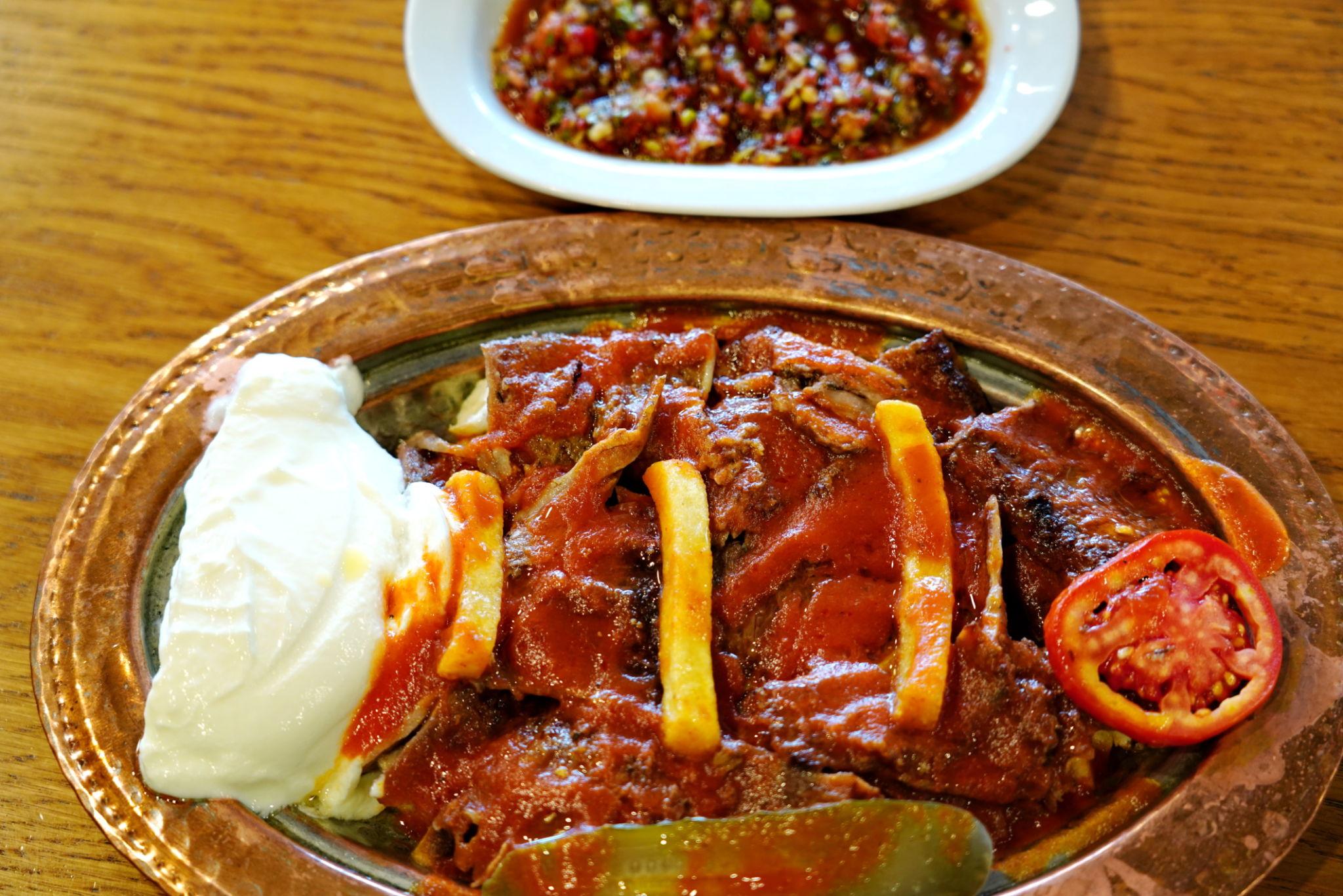 Bursa mutfağının en bilinen lezzetlerinden biri olan İskender kebap, döner eti, tereyağı ve yoğurt eşliğinde sunulan klasik bir Bursa yemeğidir.